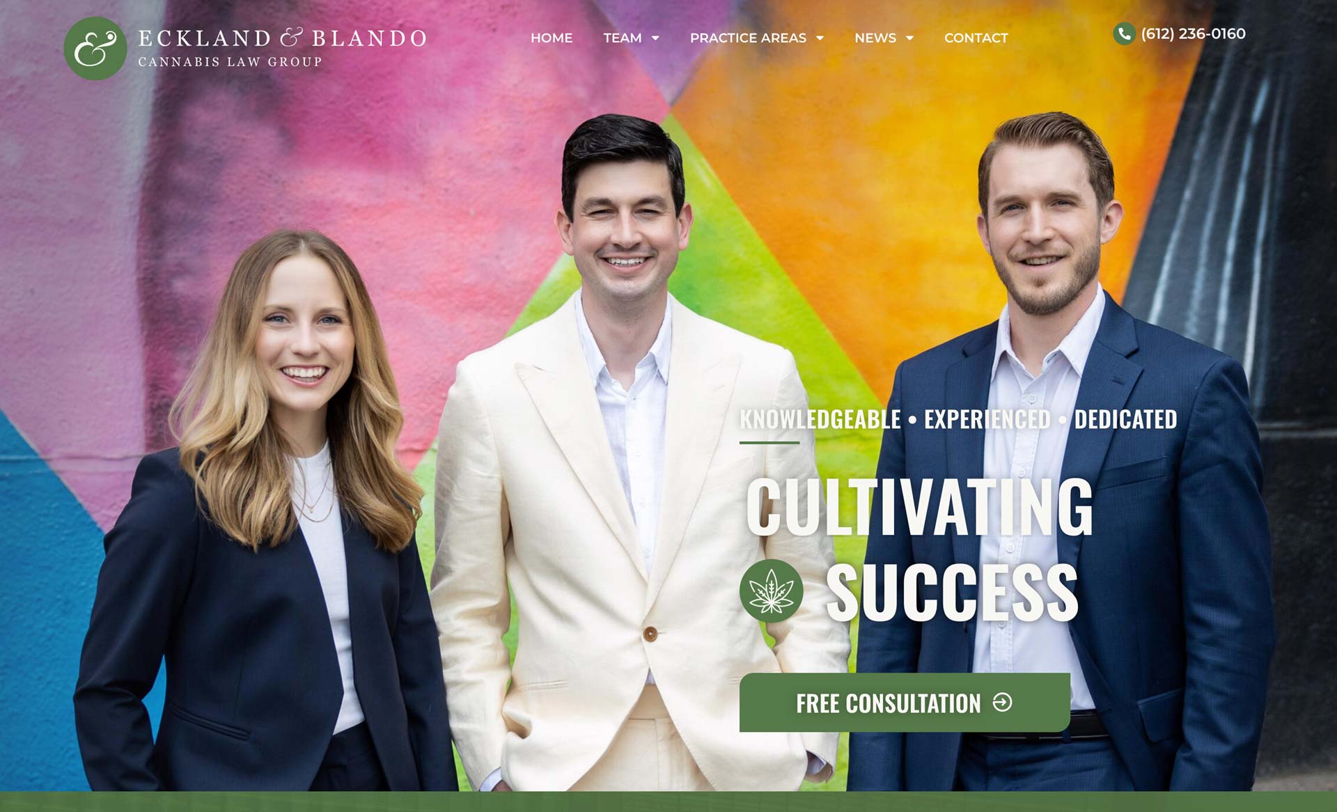 Designed and developed a professional site for the Cannabis Law Group at Eckland & Blando LLP, highlighting their expertise in hemp and cannabis law.